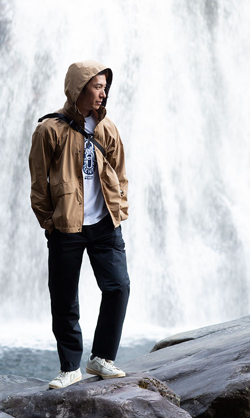 天気がよめない旅行や、雨の多いシーズンに、一着プラスするだけで、ぐっと機能的て快適なアクティブコーデイネートに。